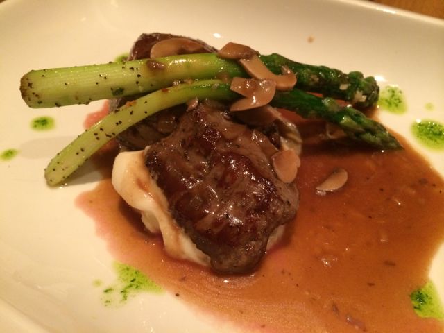 (Hauptgang: Rinderfilet mit grünem Spargel und Kartoffelbrei – unser absoluter Favorit)